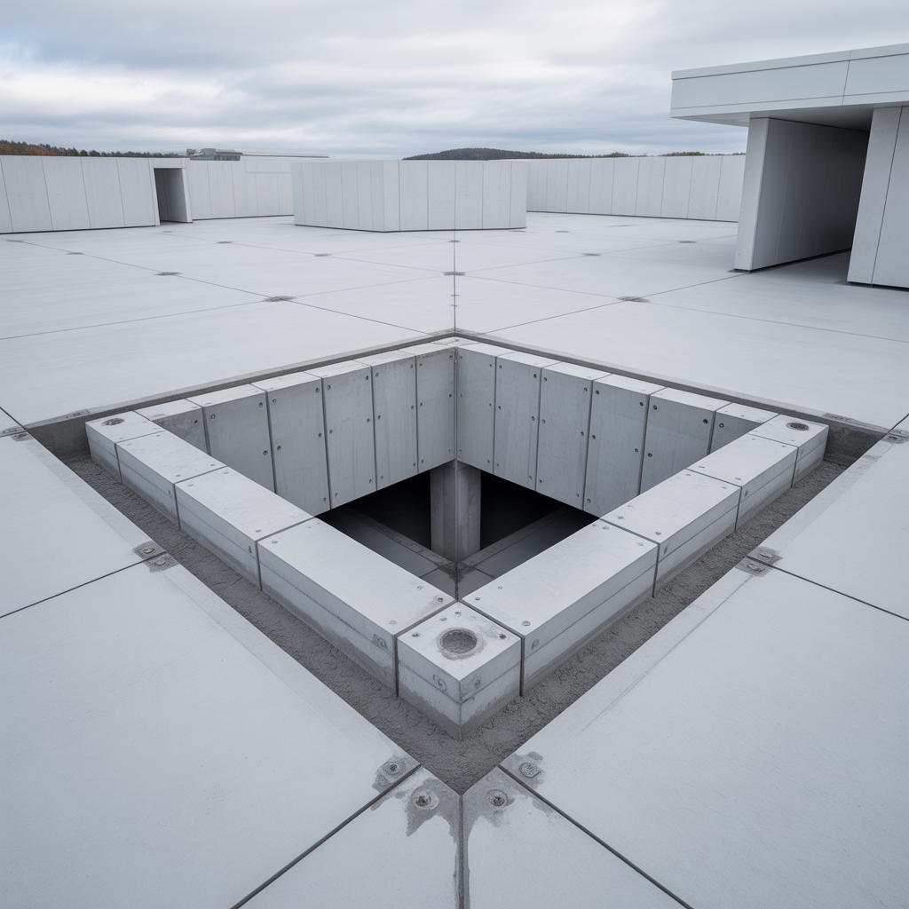 Öppningen togs upp med wiresåg och kärnborrning för kontrollerade snitt och begränsade vibrationer. Runt öppningen monterades en bärande stålram av S355-profiler, med upplag mot betong via förstärkningsplåtar och svällfritt injekteringsbruk för jämn lastöverföring. Infästningar utfördes med kemankare godkända för sprucken betong, med noggrann hålrengöring och montagetider enligt teknisk data. Tvärbalkar skruvförband med bultar i klass 8.8 drogs till specificerat moment och märktes för spårbarhet. Kantarmering kompletterades och en lokal pågjutning i betong C30/37 utfördes för att säkra kantbalkar och uppnå rätt anslutning för den nya trappan. Brandskyddet löstes genom inbyggnad av stål med godkända skivmaterial för föreskriven brandteknisk klass samt brandtätning kring genomföringar.
