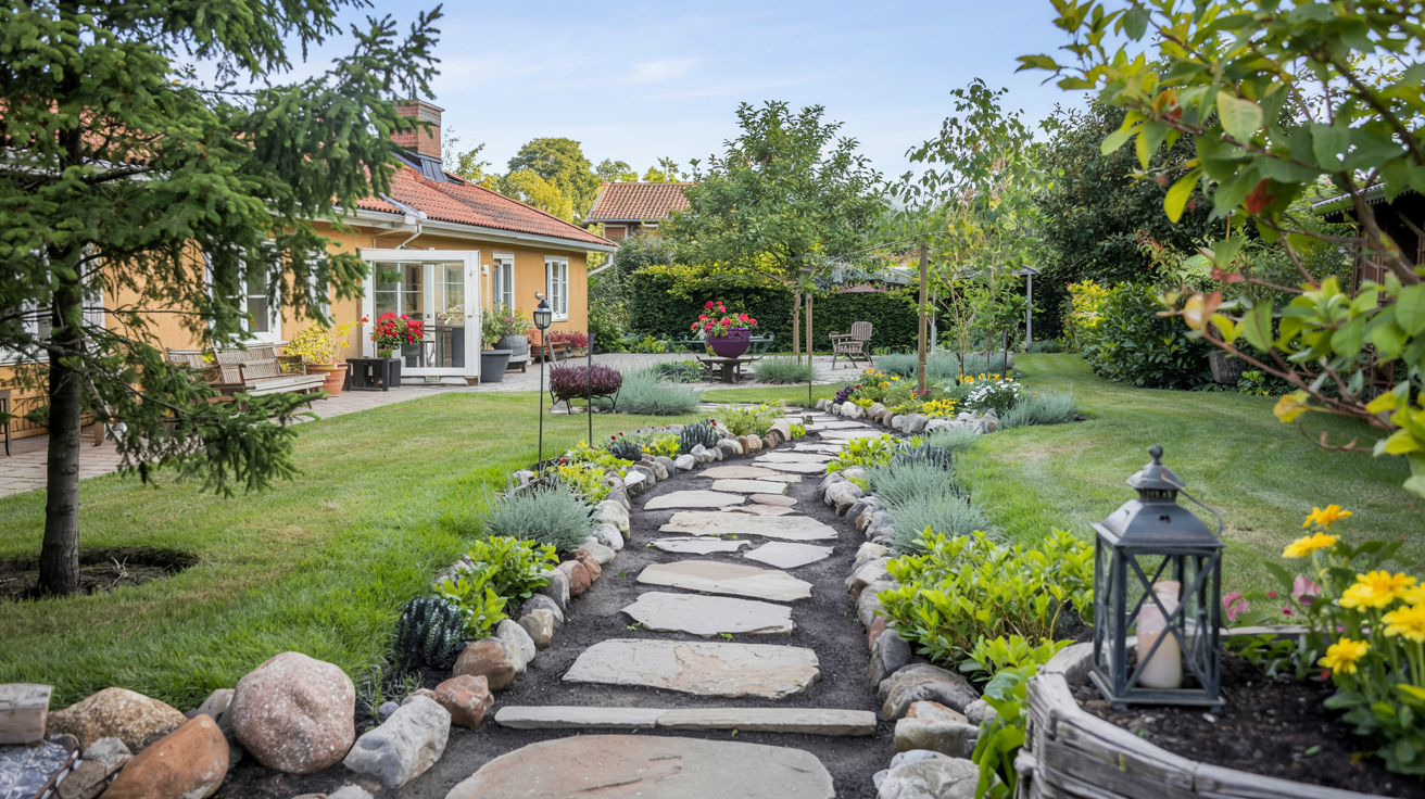 • Stenläggning för uppfarter, gångstigar, uteplatser med mera